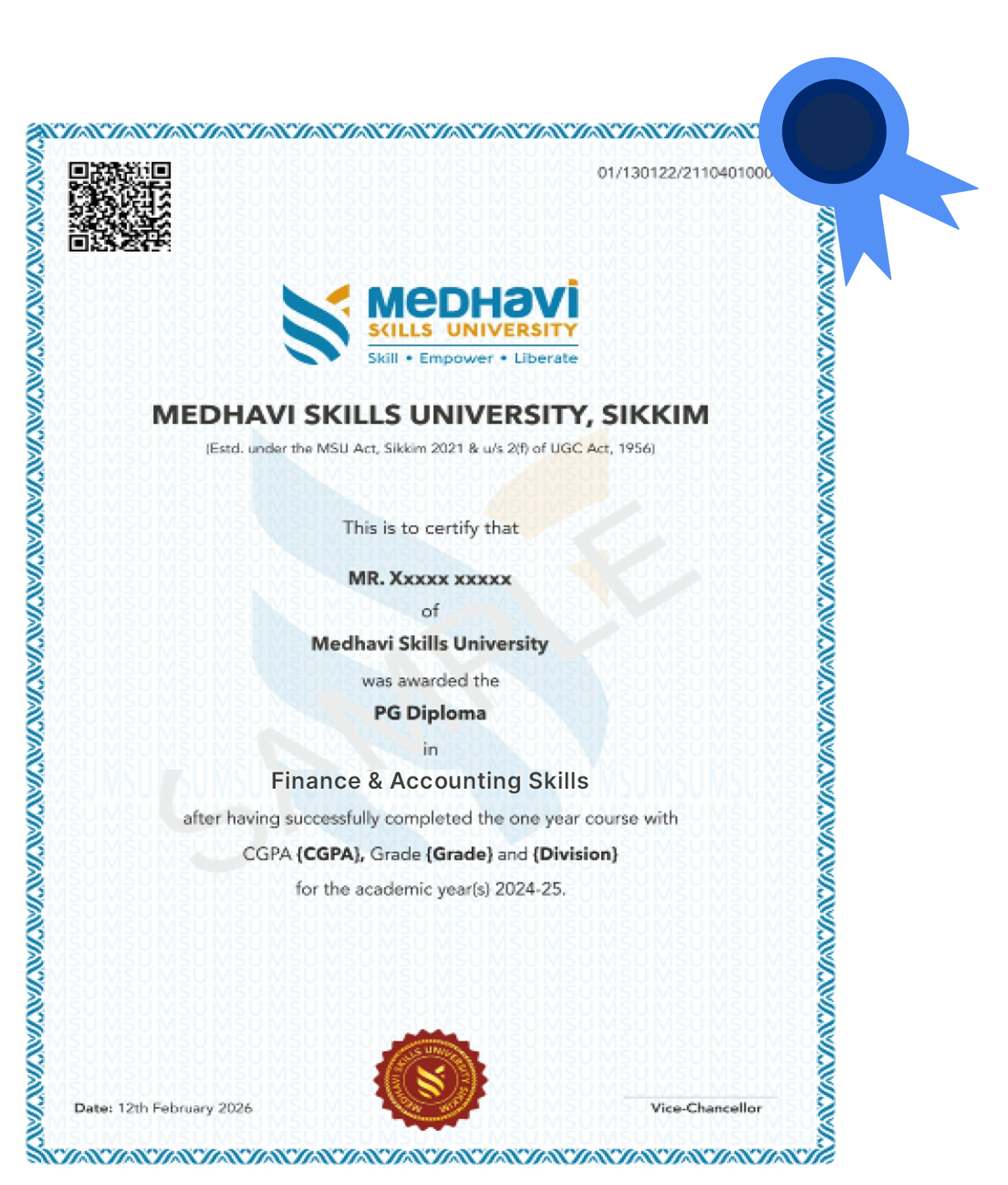 By Medhavi Skills University (Recognized by UGC & NCVET) with Practical Exposure/ Work Integration Kickstart a Finance Career with Hands-On Industry Training, Live Projects, and Assured Job Opportunities